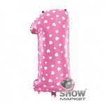 Fóliový balónek číslo "1" růžový se srdíčky (100 cm).)