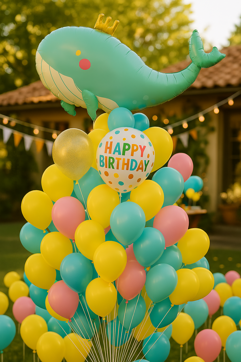 - Balon foliowy w kształcie wieloryba z koroną to idealna dekoracja na każde przyjęcie. (71cm*93cm)