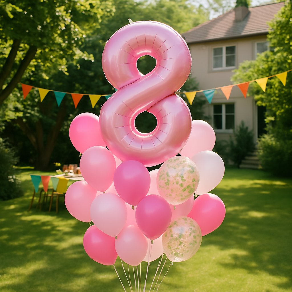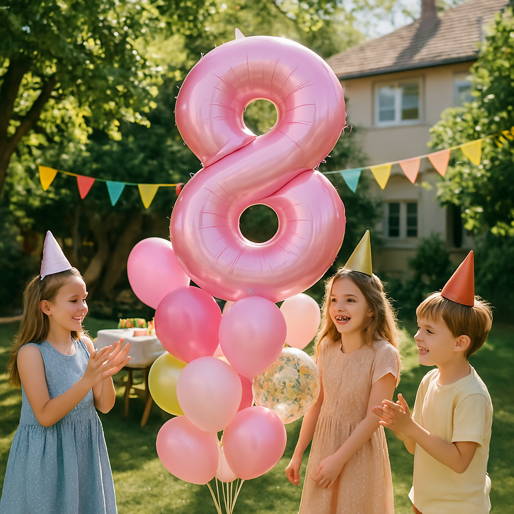 - Fóliový balónek číslo "8" světle růžový (100 cm) - elegantní růžový fóliový balónek ve tvaru čísla 8, ideální pro dětské oslavy, narozeniny a další příležitosti.