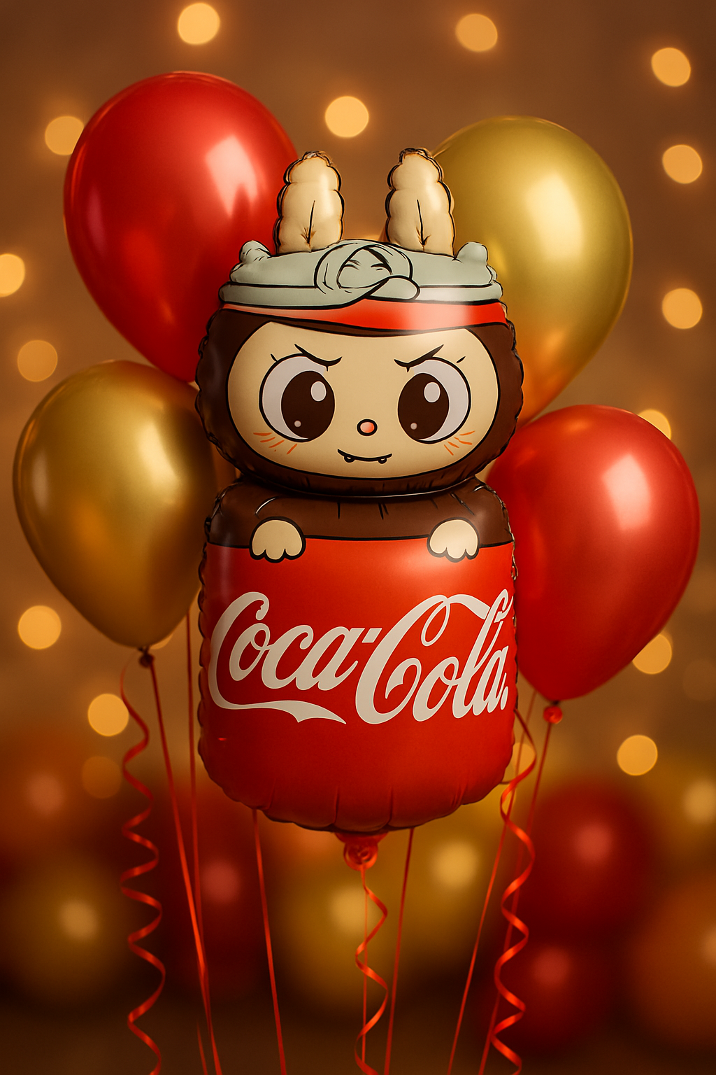 Fóliový balónek kombinuje kouzlo pohádkové postavičky s rozpoznatelností značky Coca-Cola. Na horní straně balónku je vyobrazena přátelská postavička s velkýma očima a helmou s rohy, která přitahuje pozornost dětí. Spodní červenou část balónku zdobí klasické bílé logo Coca-Cola. Tato forma reklamy nebo dekorace je ideální pro firemní akce, slavnosti, narozeniny nebo propagační aktivity. Nejde jen o balón, ale také o výrazný vizuální prvek, který buduje pozitivní asociace se značkou.
