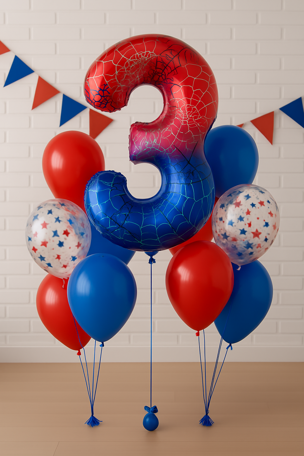 Fóliový balónek ve tvaru čísla 3. Balónek je zdoben motivem pavučiny, což mu dodává jedinečný vzhled. Barvy balónku přecházejí z červené nahoře do modré dole a vytvářejí tak gradientní efekt. Pavučiny jsou bílé a černé, což dodává balónku kontrast a činí ho vizuálně ještě přitažlivějším. Takový balónek může být dokonalým doplňkem pro tematické večírky, narozeniny nebo jiné zvláštní příležitosti.