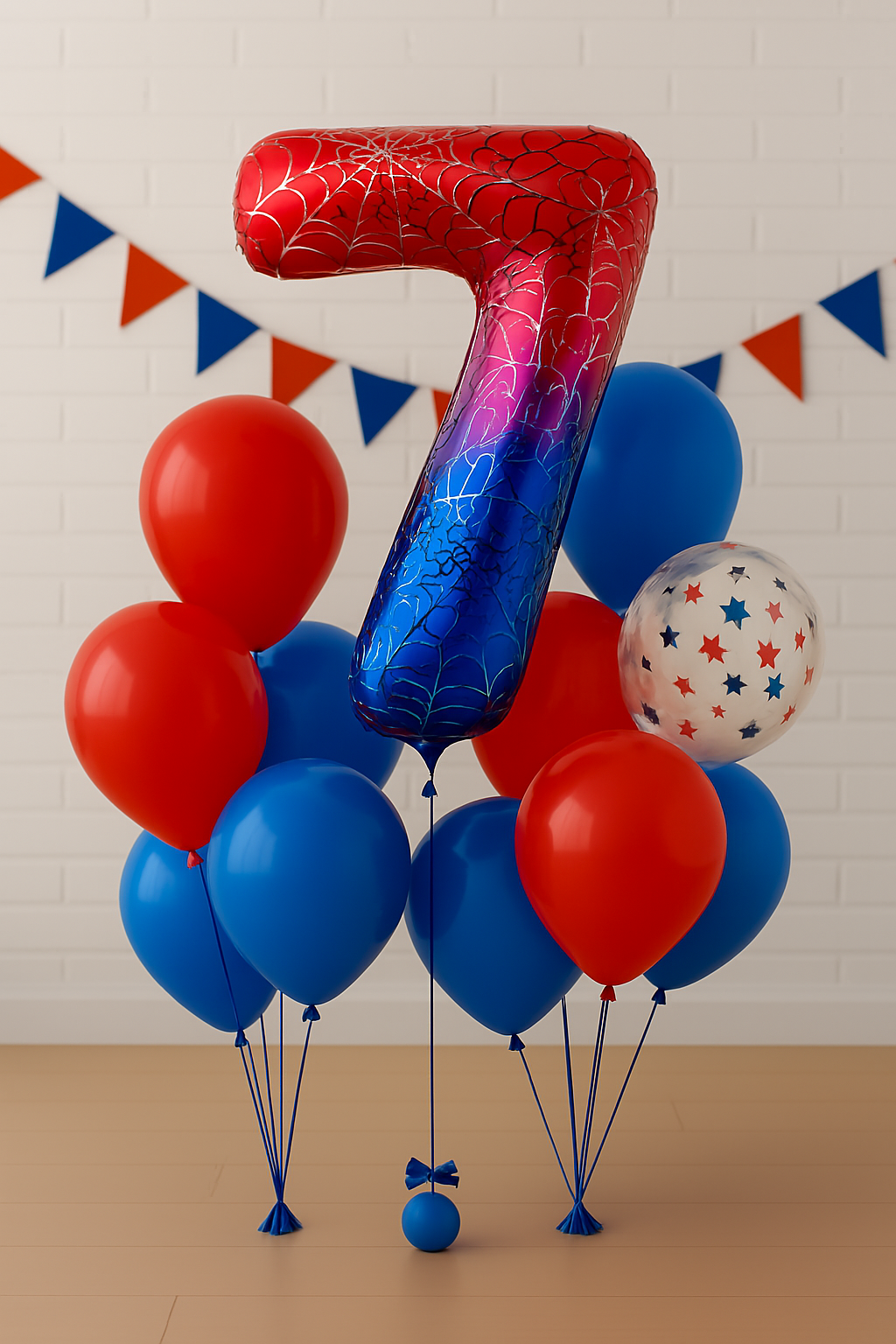 - Fóliový balónek číslo "7" Spider (100 cm) - velký fóliový balónek ve tvaru čísla 7, ideální pro číselné kompozice a dekorace k různým příležitostem.