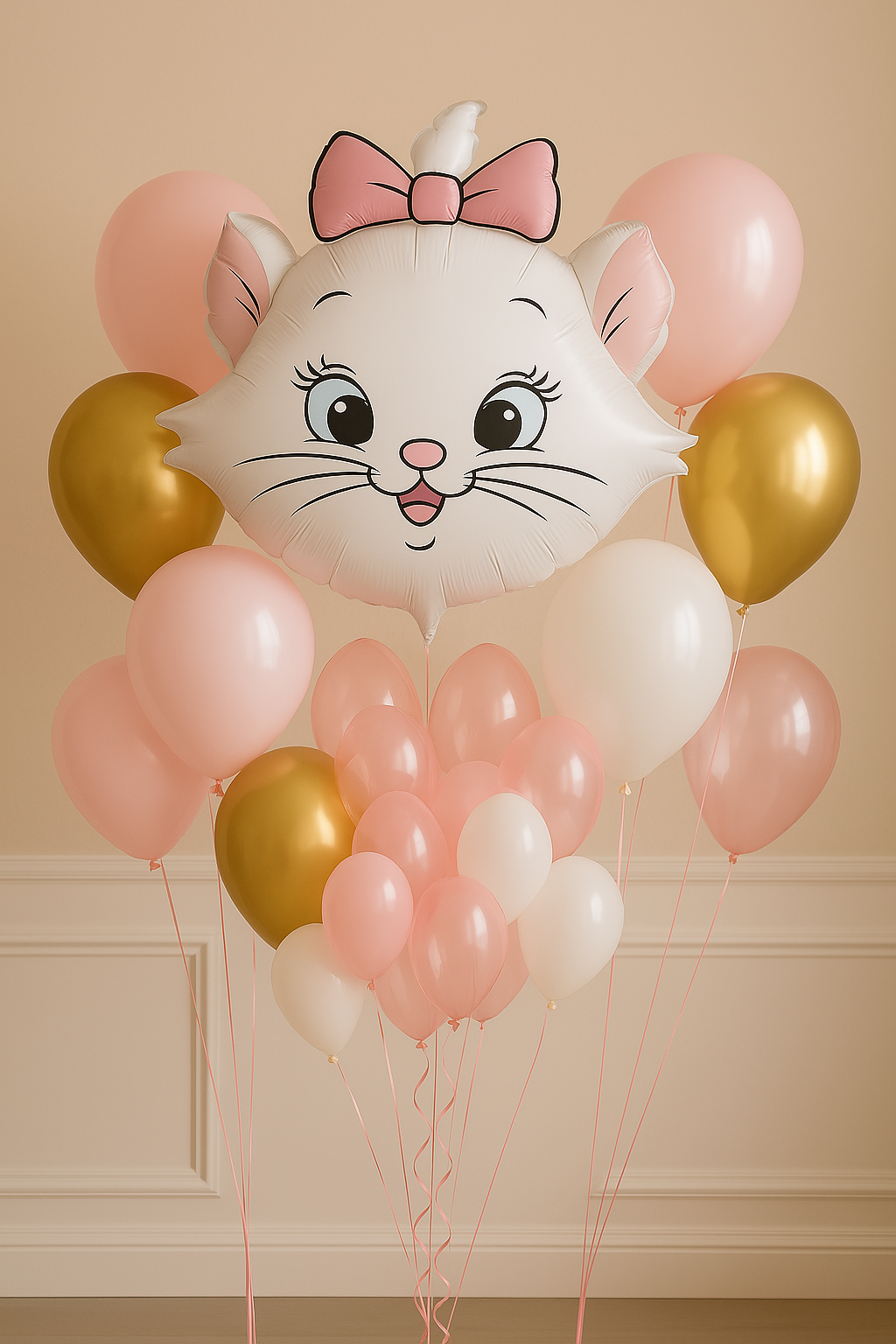 Fóliový balónek zobrazuje hlavu rozkošného koťátka s velkýma třpytivýma očima a růžovou mašlí na hlavě. Jemné šedé akcenty zvýrazňují jeho rysy a dodávají mu ještě větší přitažlivost. Balón je vyroben z odolného materiálu, který zajišťuje, že se dlouho vznáší ve vzduchu. Díky svým rozměrům 54x58 cm je ideální jako dekorace na dětské oslavy, narozeniny nebo jiné veselé příležitosti. Skvělá volba pro milovníky zvířat a pohádkové atmosféry!
