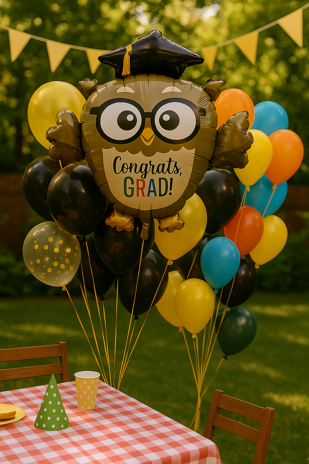 - Fóliový balónek "Sova. Gratulace" (69 cm*72 cm) - fóliový balónek ve tvaru sovy, ideální pro slavnostní promoci!