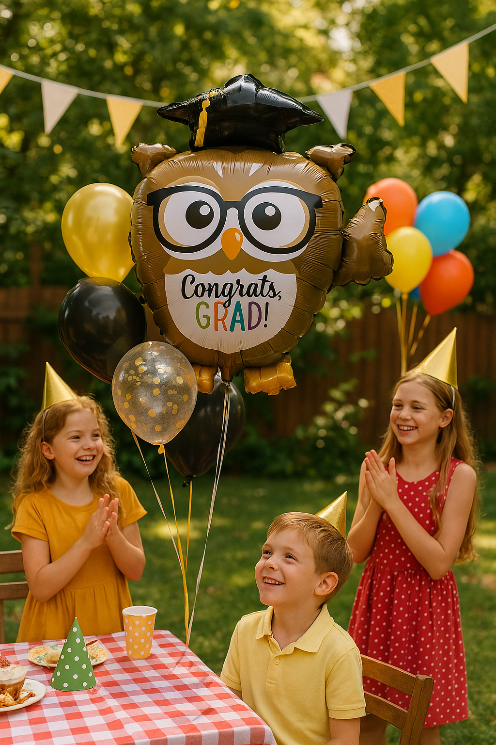 Fóliový balónek Oslavte úspěch ve vzdělávání ve tvaru sovy s biretem! Na balónku je vyobrazena přátelská sova s brýlemi, která drží křídla v blahopřejném gestu. Na těle sovy je nápis "Congrats, GRAD"!" barevnými písmeny. Ideální pro výzdobu maturitního večírku nebo večírku na vysoké škole. Vyrobeno z vysoce kvalitní fólie, která zajišťuje dlouhodobé udržení vzduchu nebo helia. Dodejte své akci nádech kouzla a radosti s tímto rozkošným balónkem!