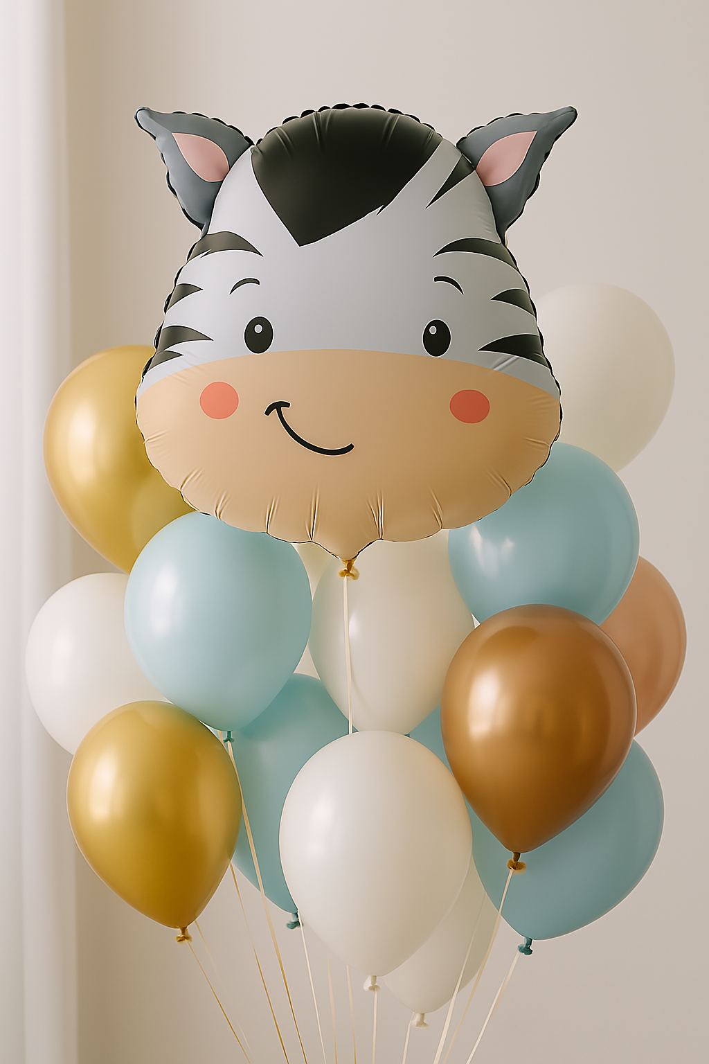 Fóliový balónek zobrazuje hlavu zebry s výraznými černobílými pruhy, růžovými tvářemi a ušima. Balónek měří 48,5 cm na šířku a 56 cm na výšku, takže je ideálním doplňkem pro výzdobu narozeninových oslav, tematických akcí nebo jiných zvláštních příležitostí. Balónek je vyroben z odolného materiálu a lze jej plnit heliem nebo vzduchem, aby poskytoval dlouhotrvající zábavu a dekoraci.