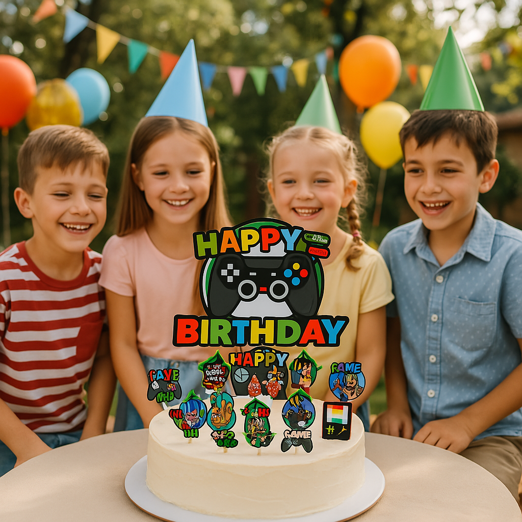 - Zdobení narozeninového dortu v hráčském stylu! Naše herní nálepky s konzolemi a nápisy "Game Over" nebo "Level Up" dodají každé akci jedinečnou atmosféru.