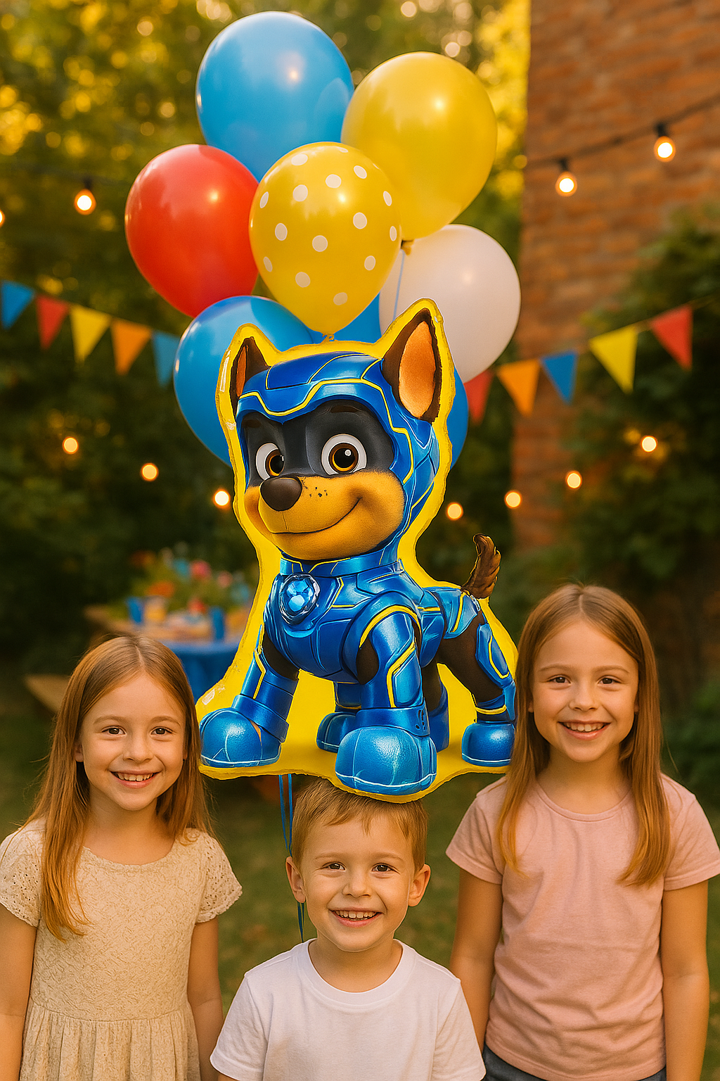 Fóliový balónek ve tvaru Chase, jedné z nejoblíbenějších postav z animovaného seriálu "Psí hlídka". Chase, odvážný policejní pes, má na sobě futuristický modrý obleček se svítícími detaily, které zdůrazňují jeho dynamický charakter. Žluté pozadí balónku krásně kontrastuje s intenzivní modrou barvou kostýmu, přitahuje pozornost a přináší barevný nádech na každou událost. Takový balónek je ideální volbou jako dekorace na narozeninové oslavy, tematické akce nebo jako dárek pro fanoušky "Psí hlídky"."