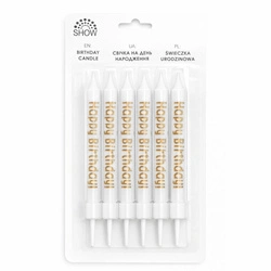 Birthday candles white with gold Happy Birthday inscription - SHOW