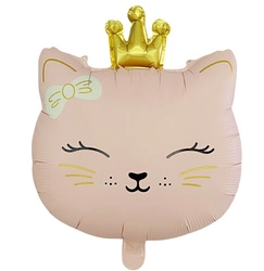 Foil balloon in the shape of a cat's head with a crown