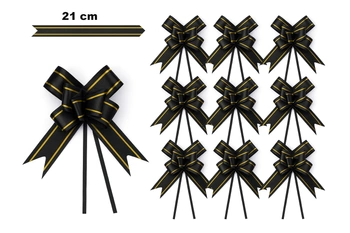 Decorative bow black with gold stripe - 21 cm