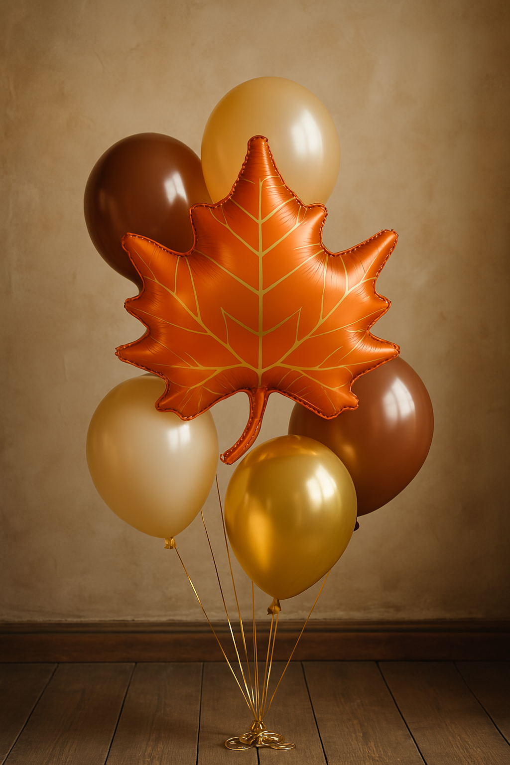 - Foil balloon in the shape of a maple leaf, ideal for autumn arrangements.