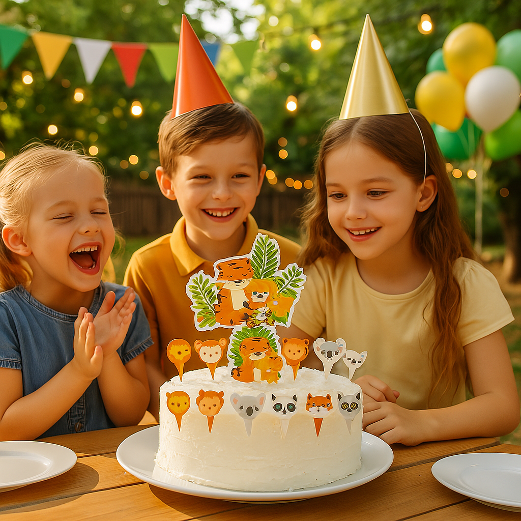 - Adorable toppers with a jungle animal motif - perfect for birthday cakes and themed parties.