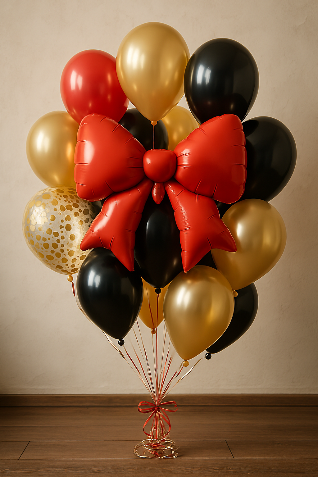 - Red bow foil balloon 98x75 cm, perfect as decoration for celebrations and special events.