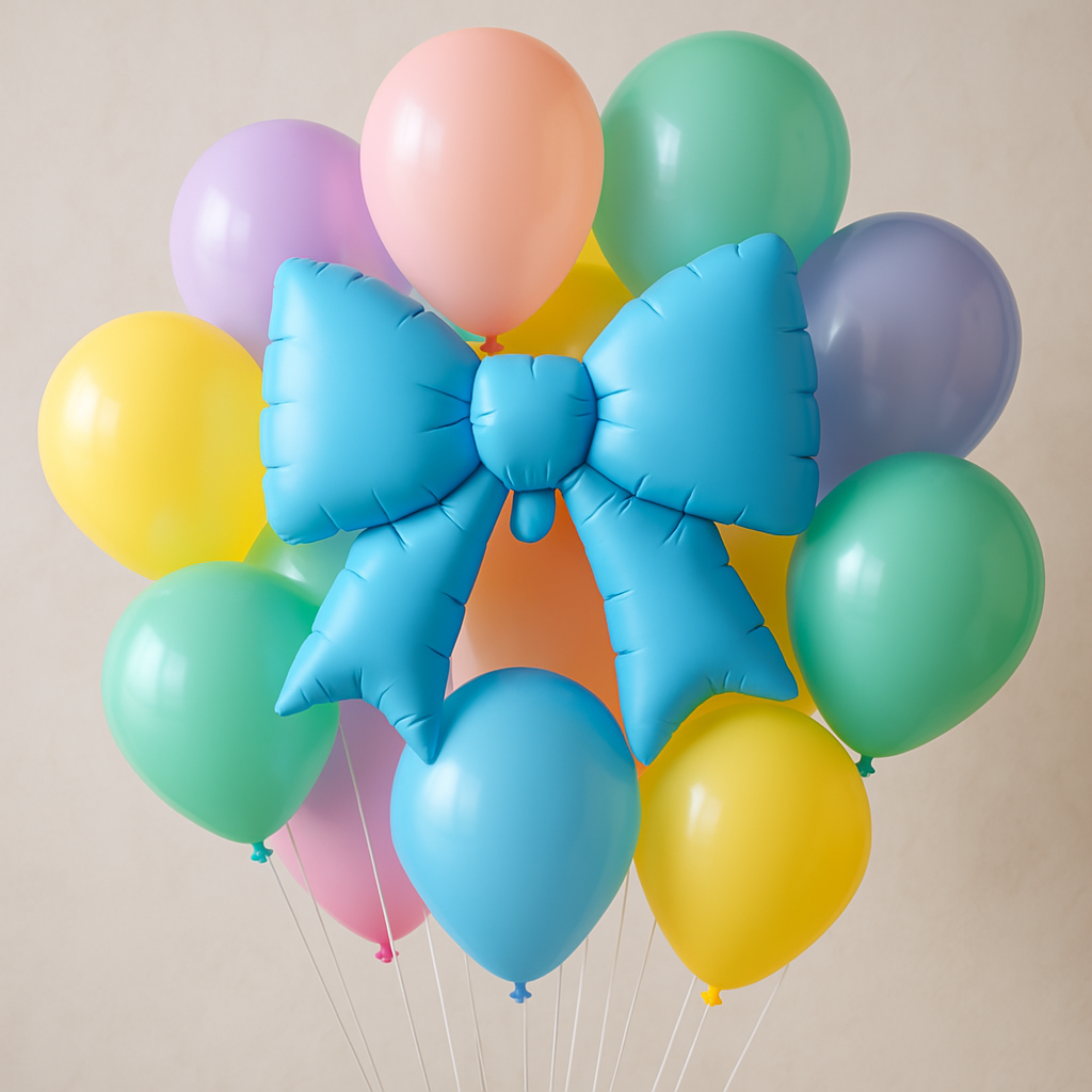 - Blue bow foil balloon 98x75 cm, perfect as decoration for celebrations and special events.