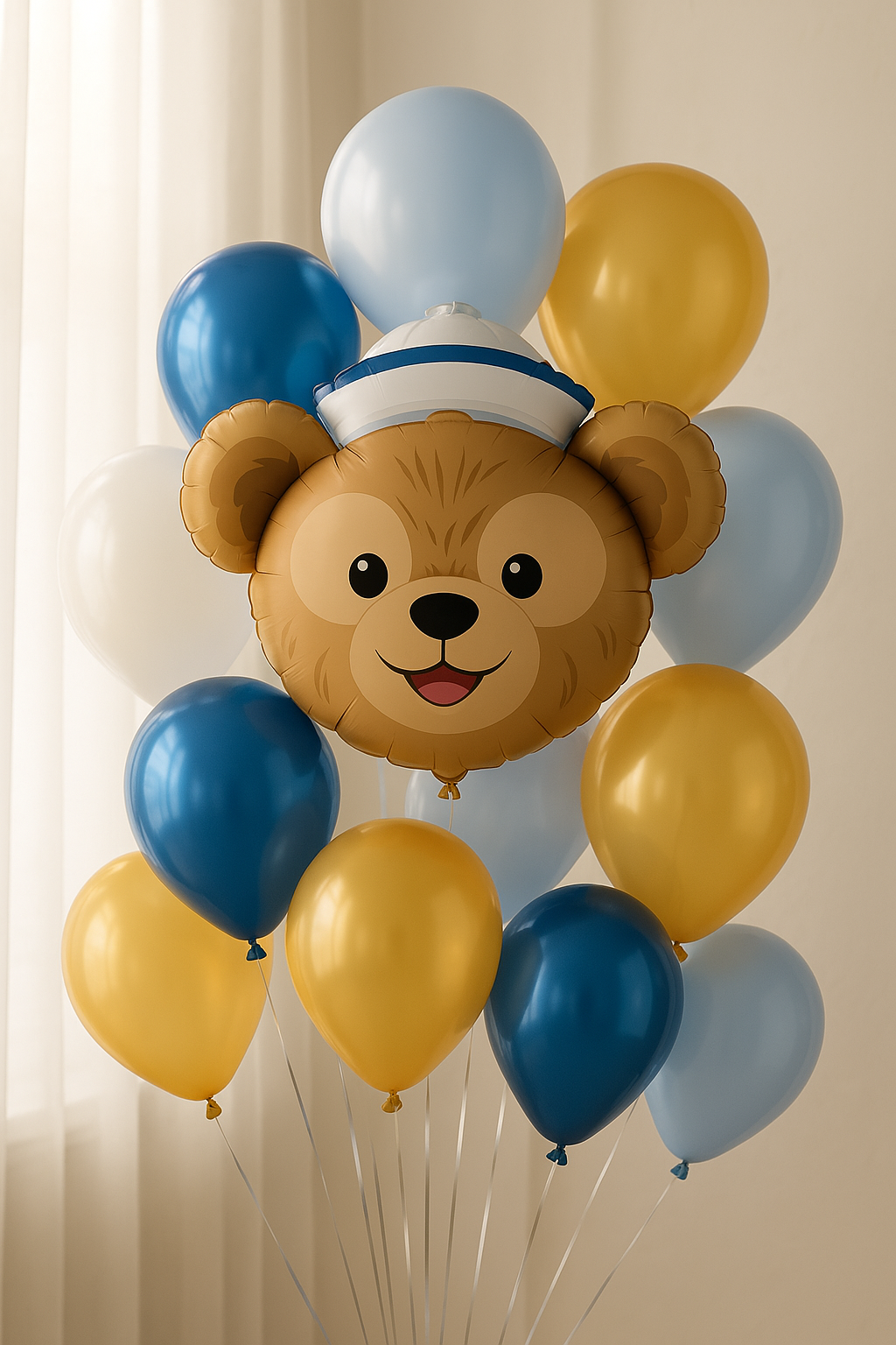 - Foil balloon measuring 70 cm × 70 cm, showing the face of a teddy bear in a sailor's cap. Ideal for children's parties and themed decorations!