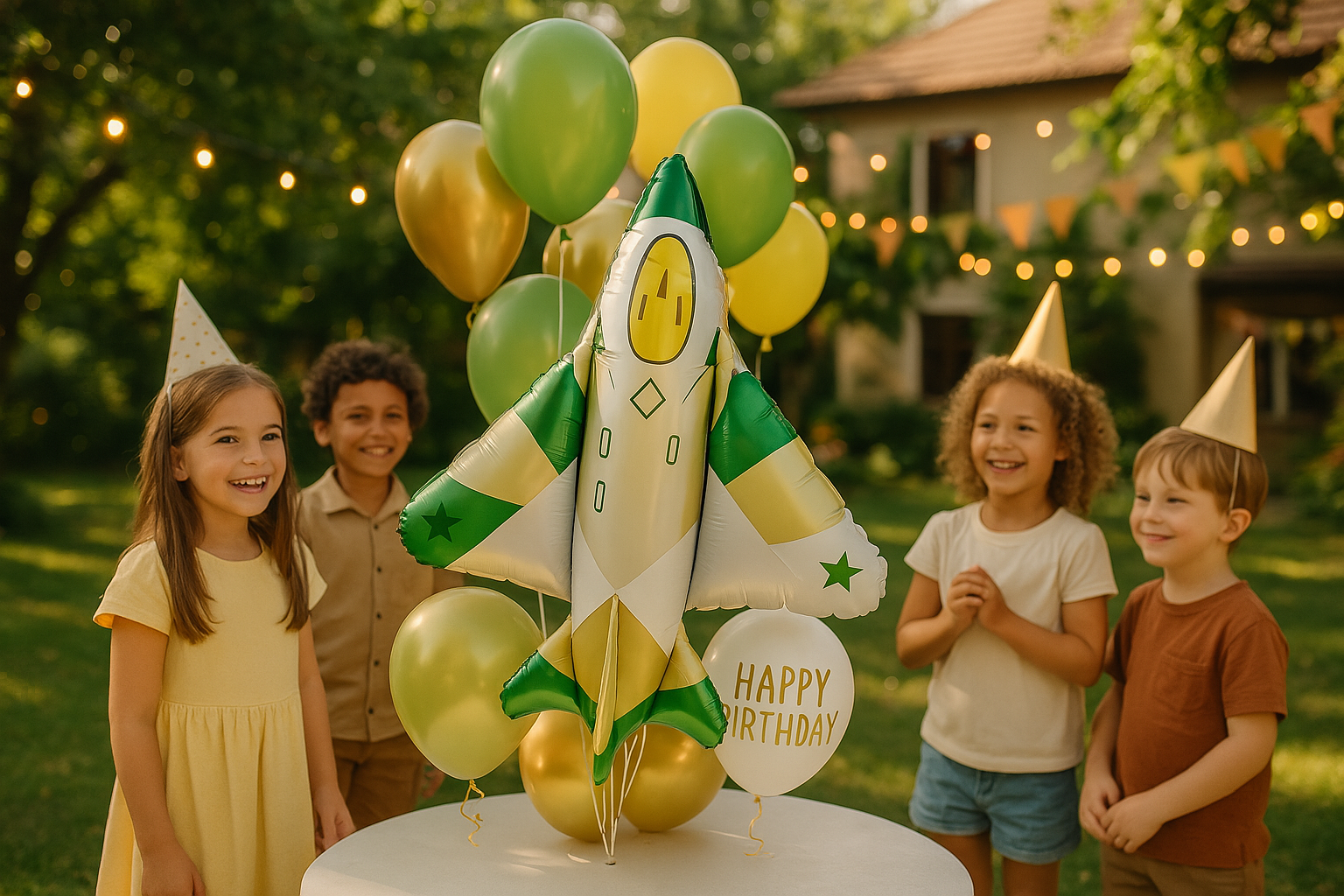 Foil balloon in the shape of an airplane is the perfect accessory for any themed party, birthday or other celebrations. The balloon measures 105x98 cm and is made of durable material for long-lasting use. Its attractive design in green, white and yellow, with additional stars, catches the eye and adds a unique touch to any event. Ideal for home decoration, photo shoots or as a gift for aviation enthusiasts.