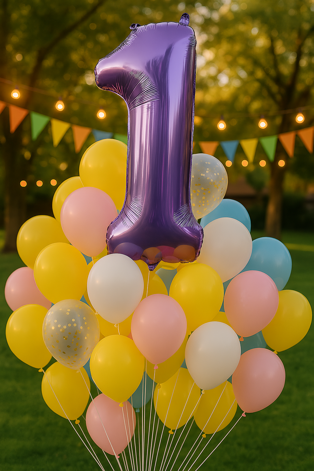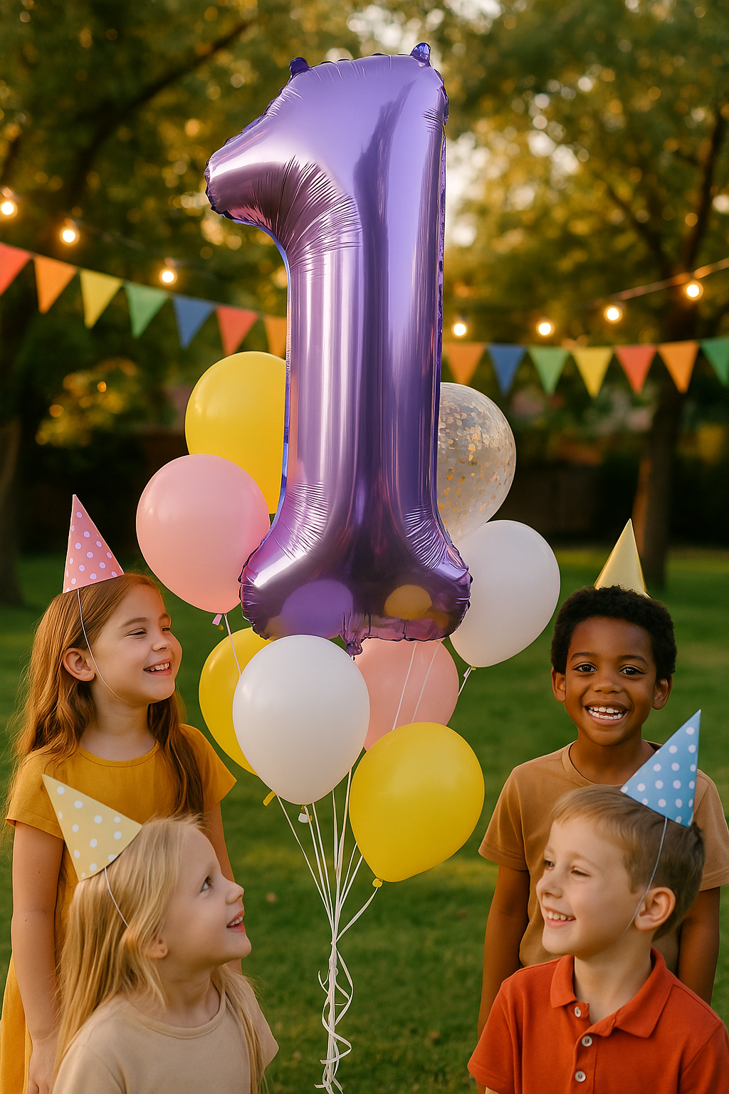 • Foil Balloon Number "1" Purple (100 cm) - foil balloon in the shape of the number 1 in an elegant purple color, ideal for birthdays and anniversaries.