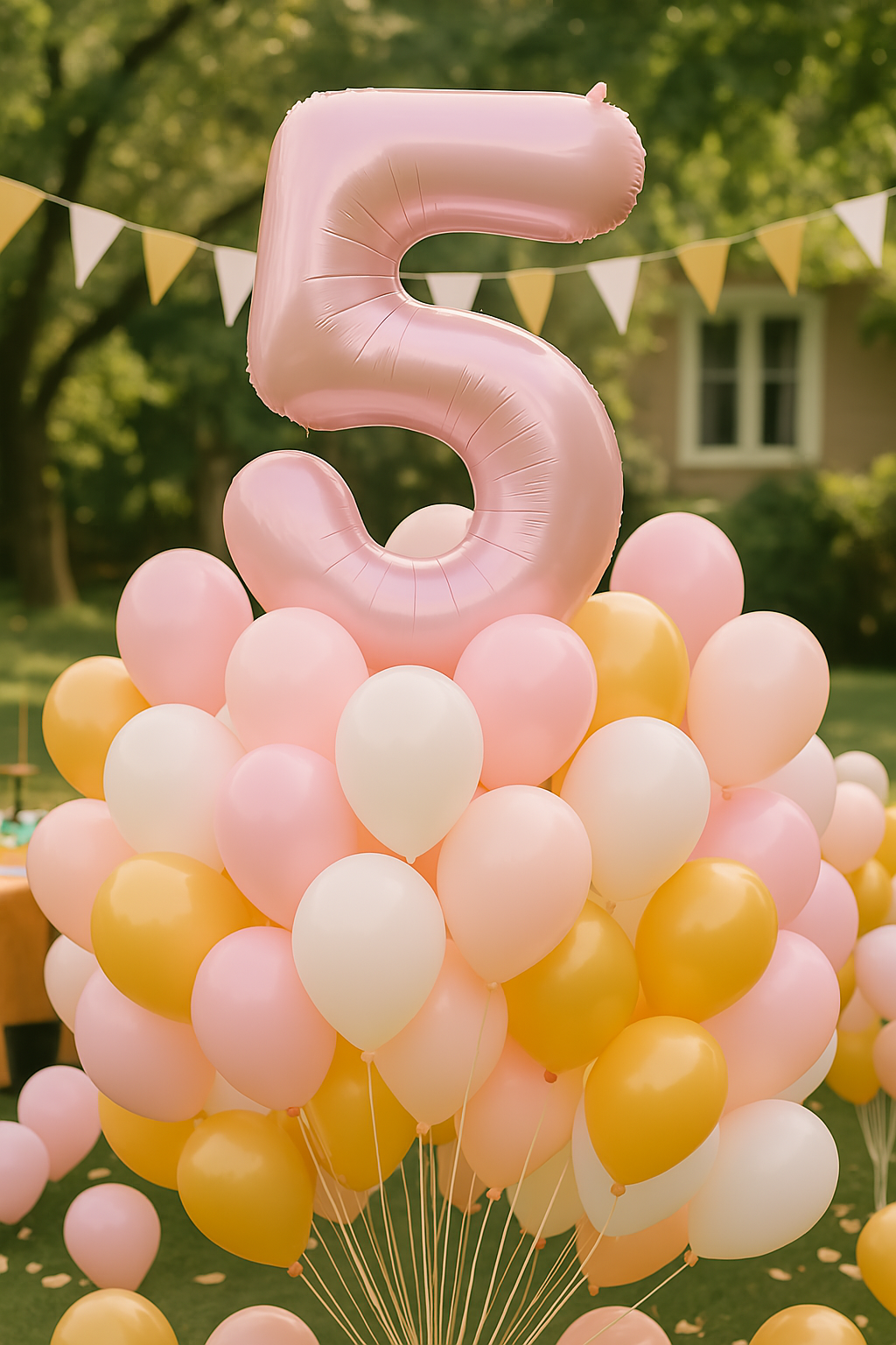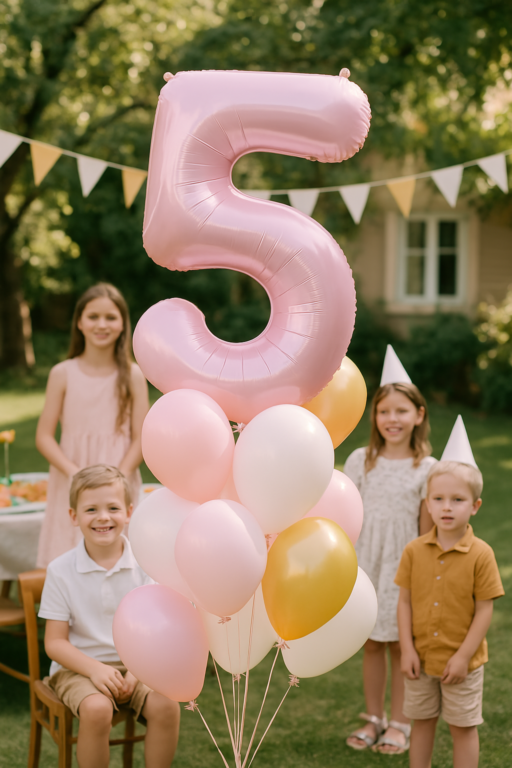 - Foil Balloon Number "5" Light Pink (100 cm) - pink foil balloon number 5, perfect for birthday parties and other celebrations.