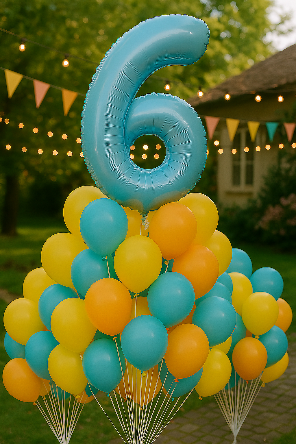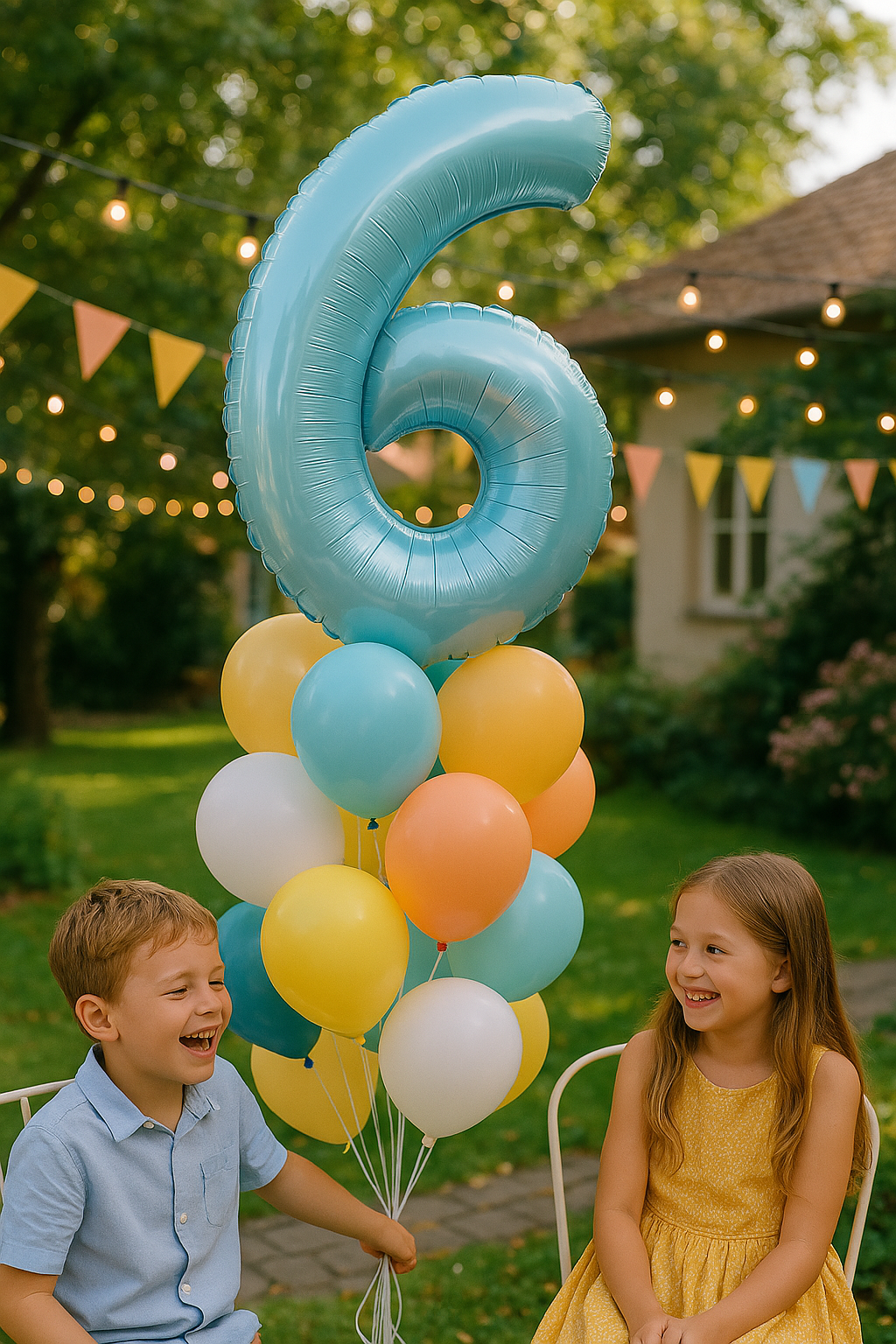 • Foil Balloon Number "6" Blue (100 cm) - a striking balloon number 6 in a light blue shade, ideal for creating special occasion decorations.