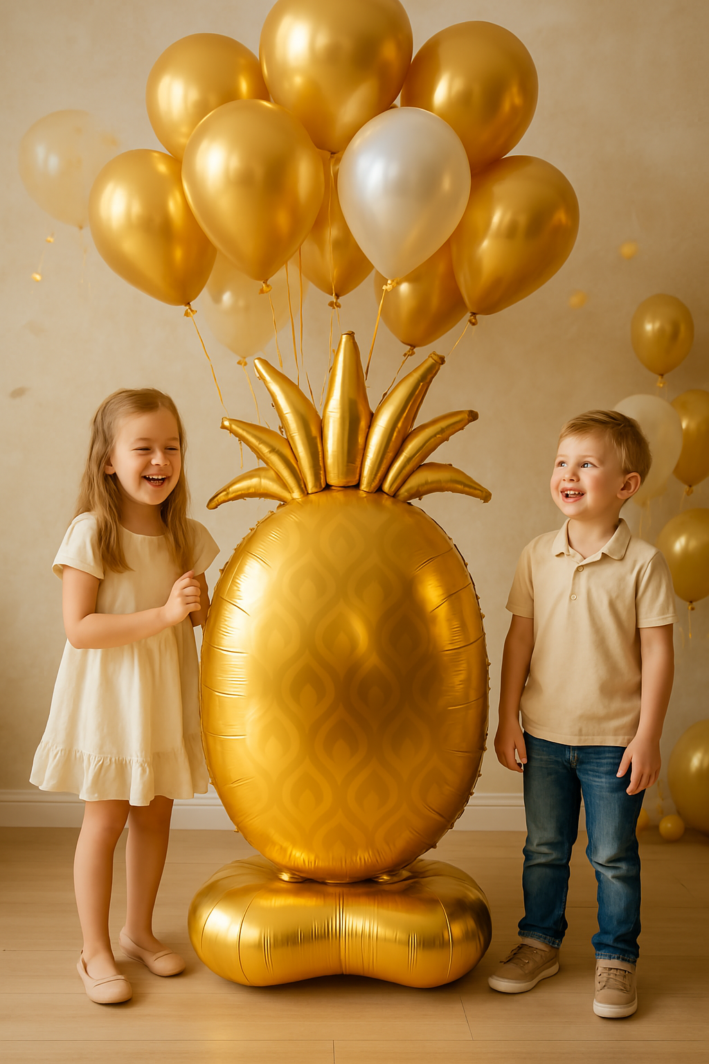 - Foil balloon in the shape of a pineapple, gold, dimensions 75x150 cm. Ideal decoration for parties and events.