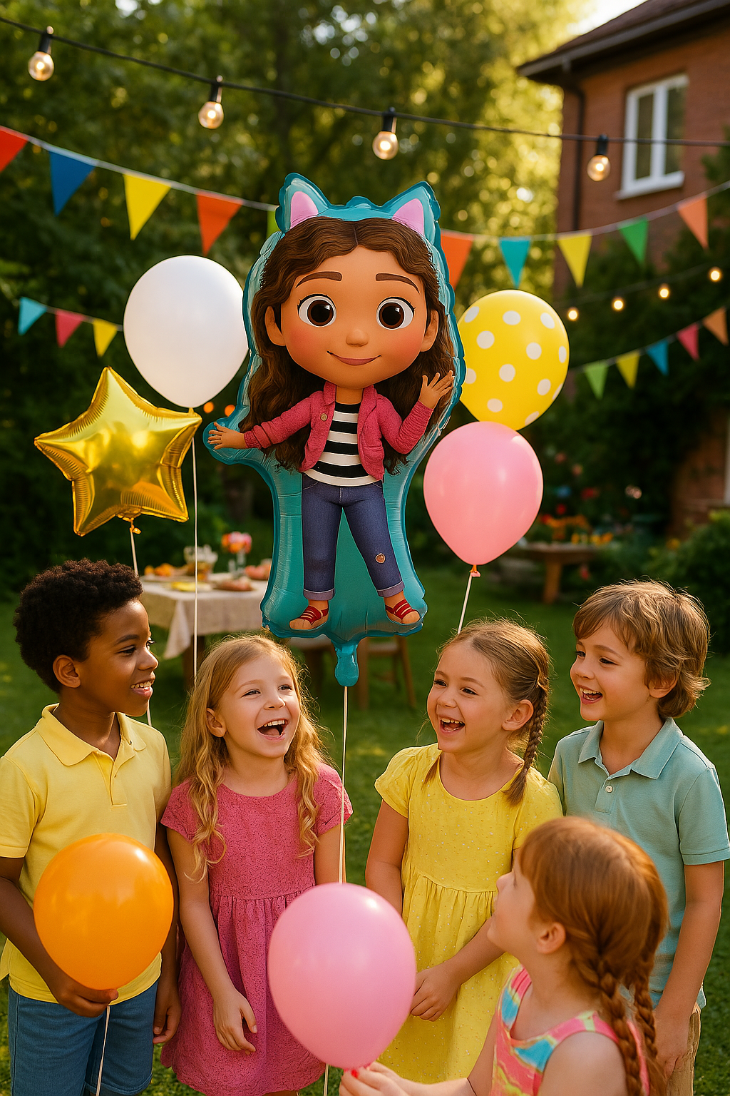 - Foil balloon with Gabi the Cat's House theme, perfect for children's parties. (49cm*92cm)