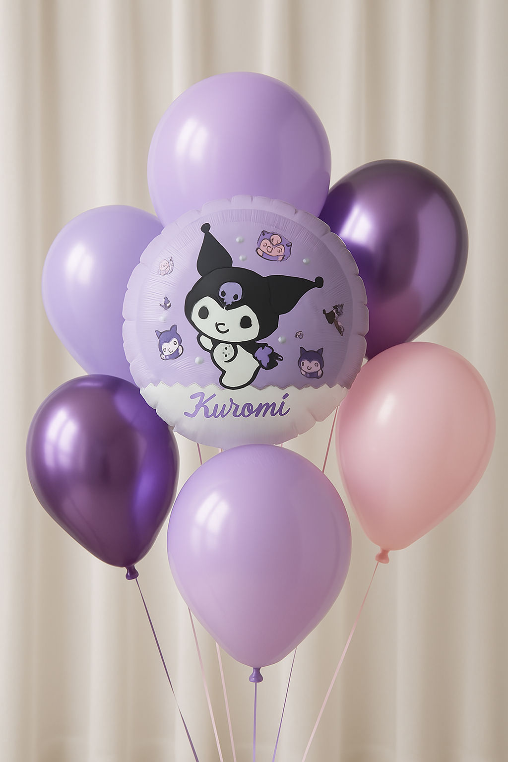 - Foil balloon with Kuromi character, 18 inches in diameter, ideal for party decorations.
