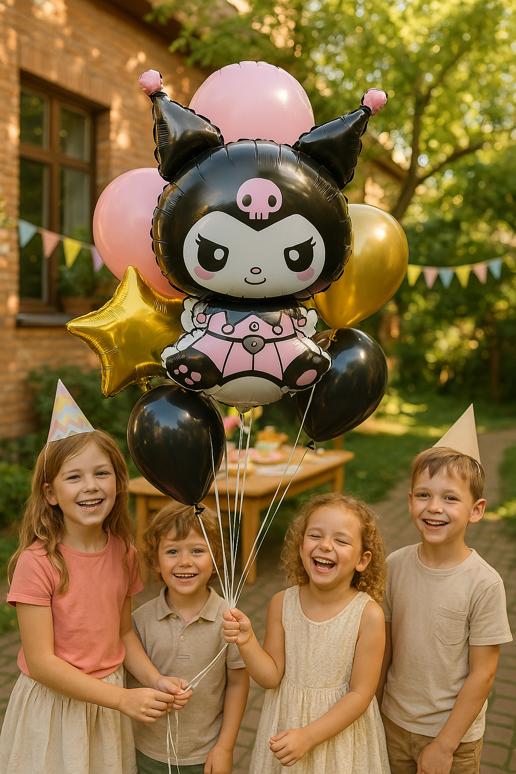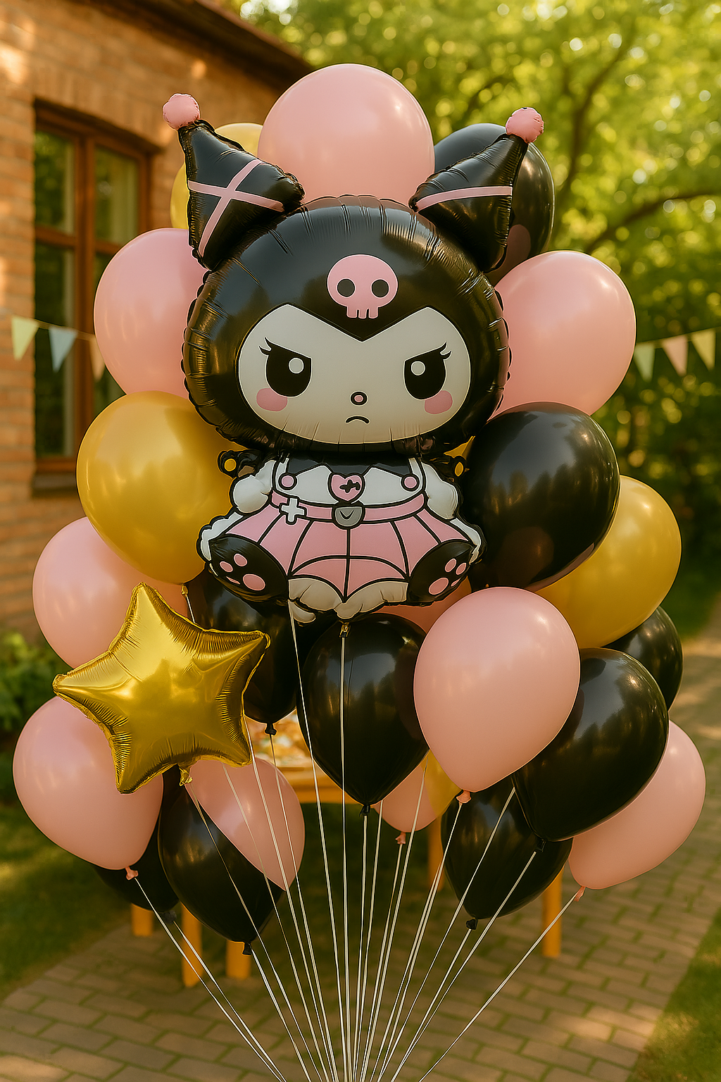 - Foil balloon depicting Kuromi character from Sanrio series, in black and pink colors. (74cm*44cm)