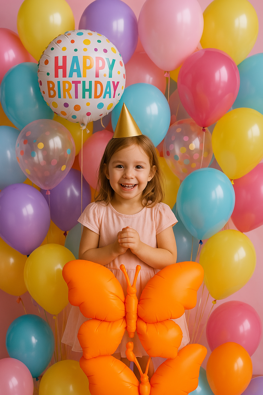 The foil balloon has a simple but elegant design, depicting a butterfly in a solid pastel orange hue. Its subtle design makes it ideal for birthday decorations, baby showers, themed parties and other special occasions. The balloon is made of durable material, which guarantees that it will hold its shape for a long time and look spectacular throughout the celebration.