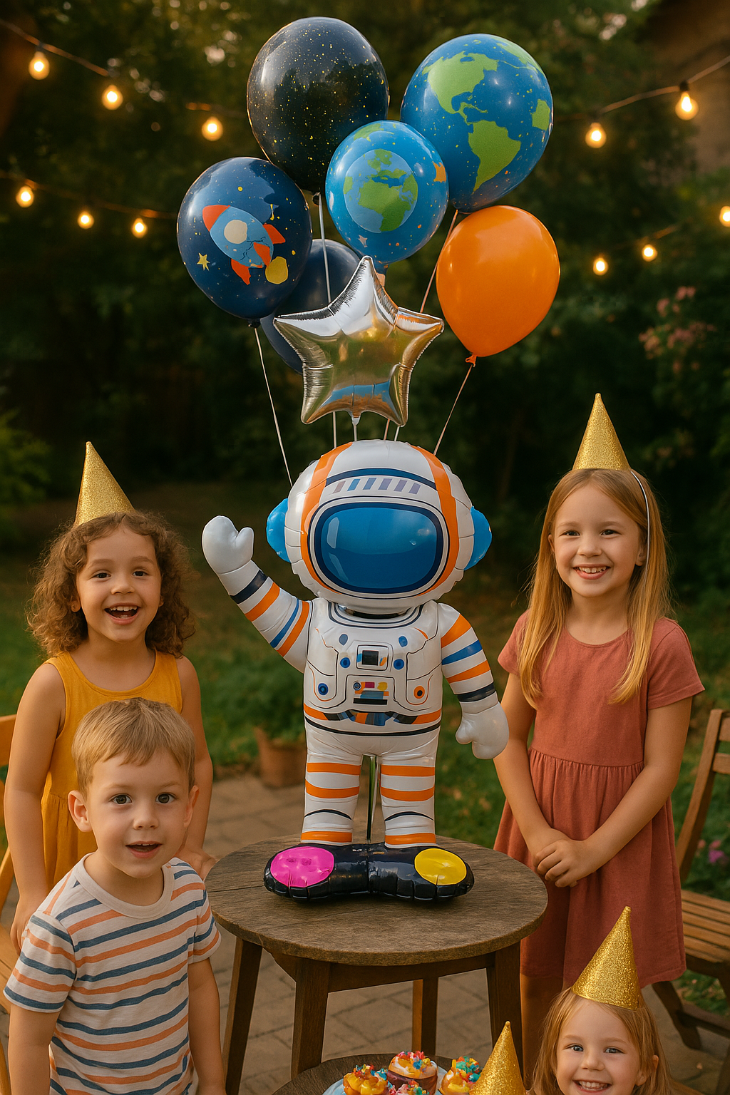 - Foil balloon in the shape of an astronaut, 40x65 cm, ideal for space themed parties and decorations.