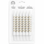 Świeczki urodzinowe białe ze złotym zygzakiem – 6 sztuk