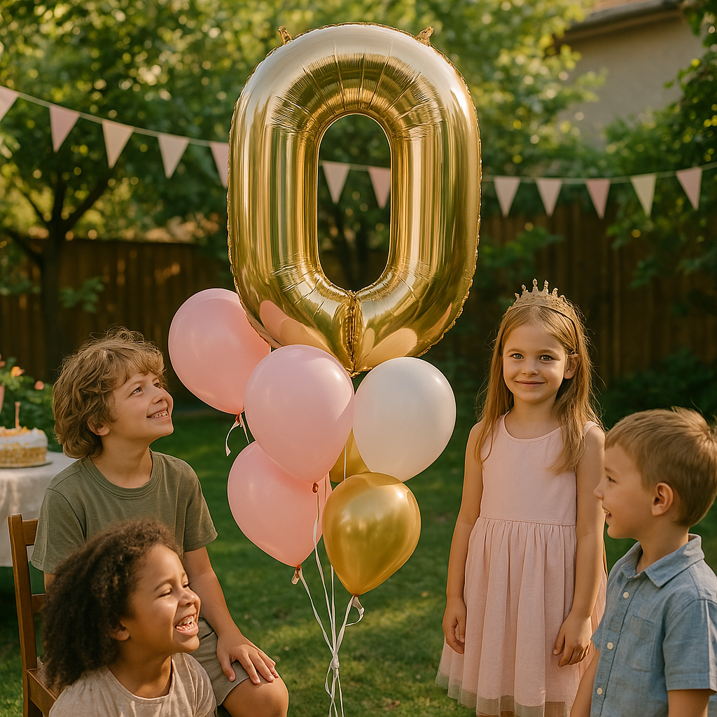 - Balon Foliowy Cyferka "0" Szampan (100 cm) – duży balon foliowy w kształcie cyfry 9, doskonały do kompozycji liczbowych i ozdób na różne okazje.