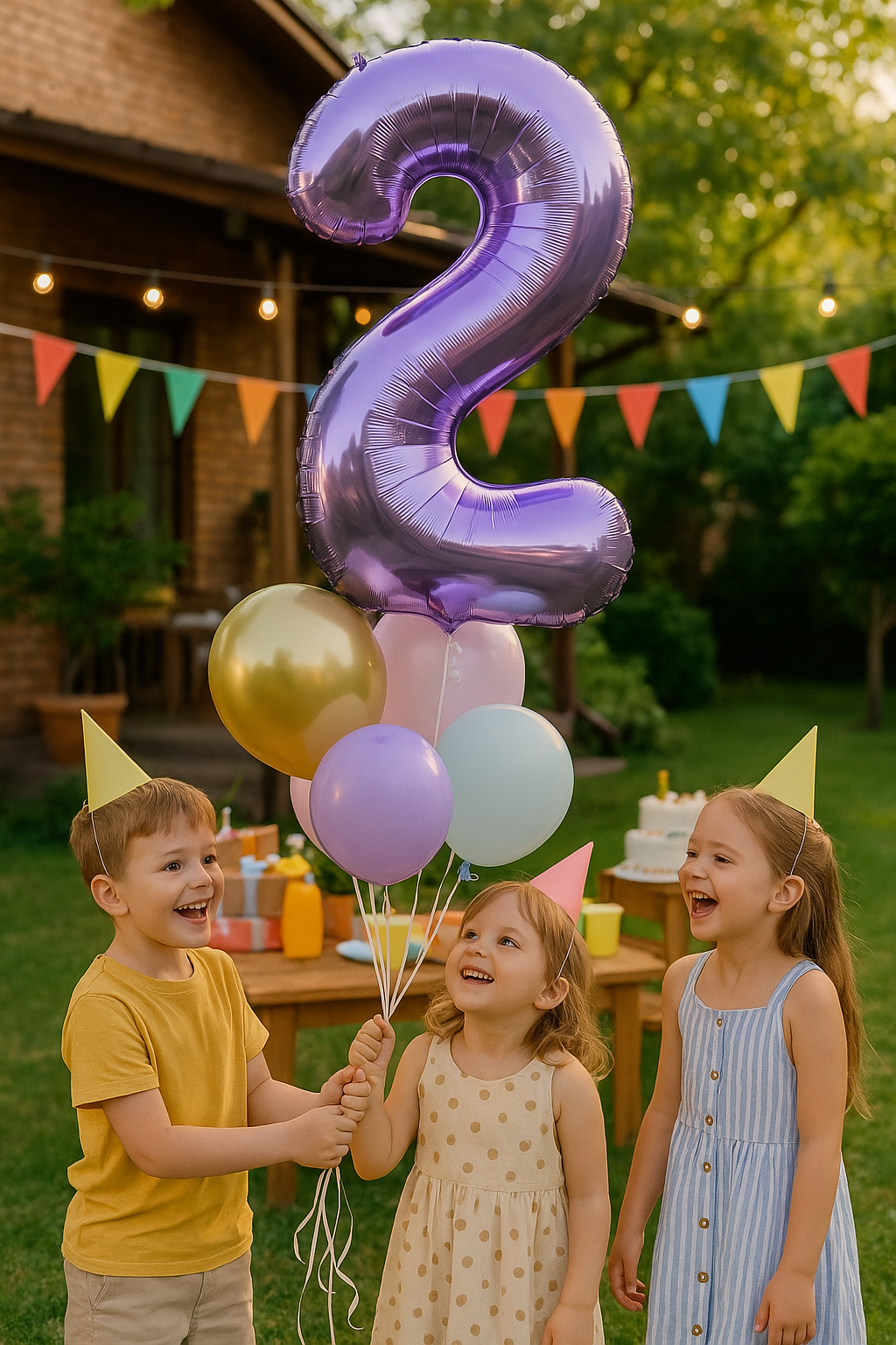 - Balon Foliowy Cyferka "2" Fioletowa (100 cm) – duży balon foliowy cyfra 2 w intensywnym odcieniu fioletu, świetny do dekoracji imprezowych.