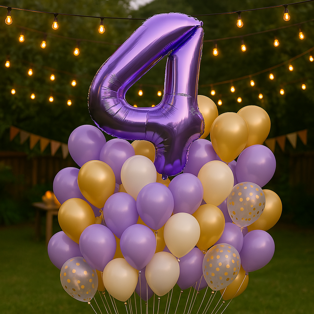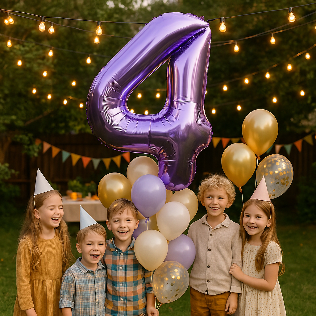 Balon Foliowy w kształcie cyfry 4. W intensywnym fioletowym odcieniu przyciąga uwagę i idealnie wpisuje się w kolorowe aranżacje imprezowe. Ma 100 cm wysokości, co czyni go poręcznym i łatwym w użyciu zarówno wewnątrz, jak i na zewnątrz.