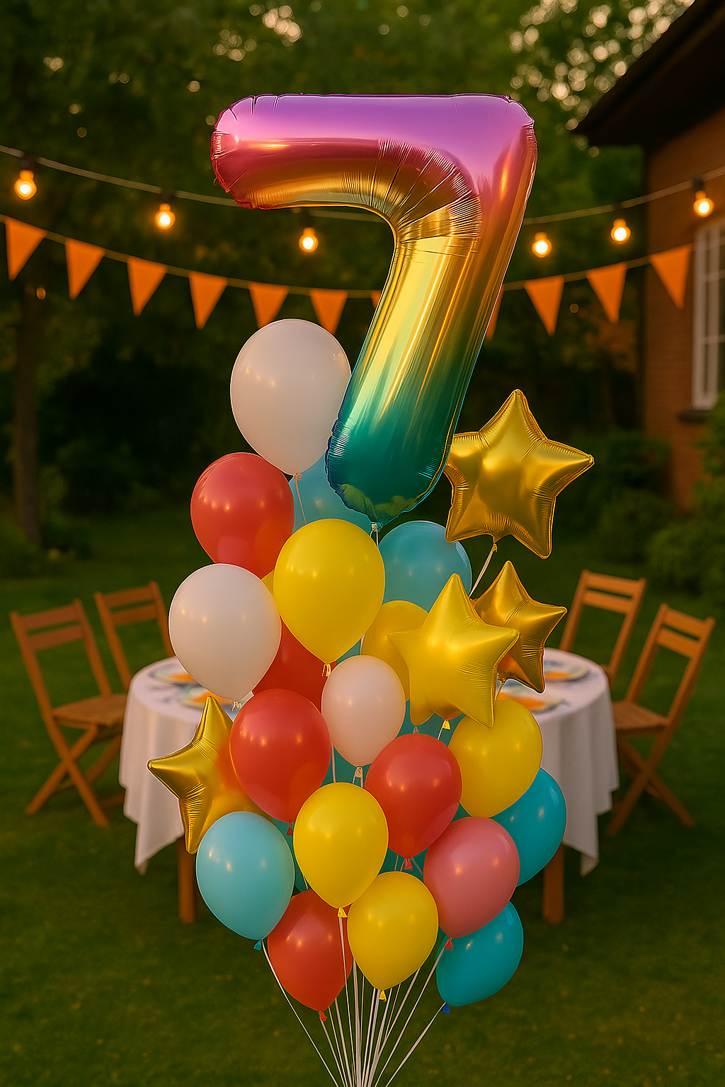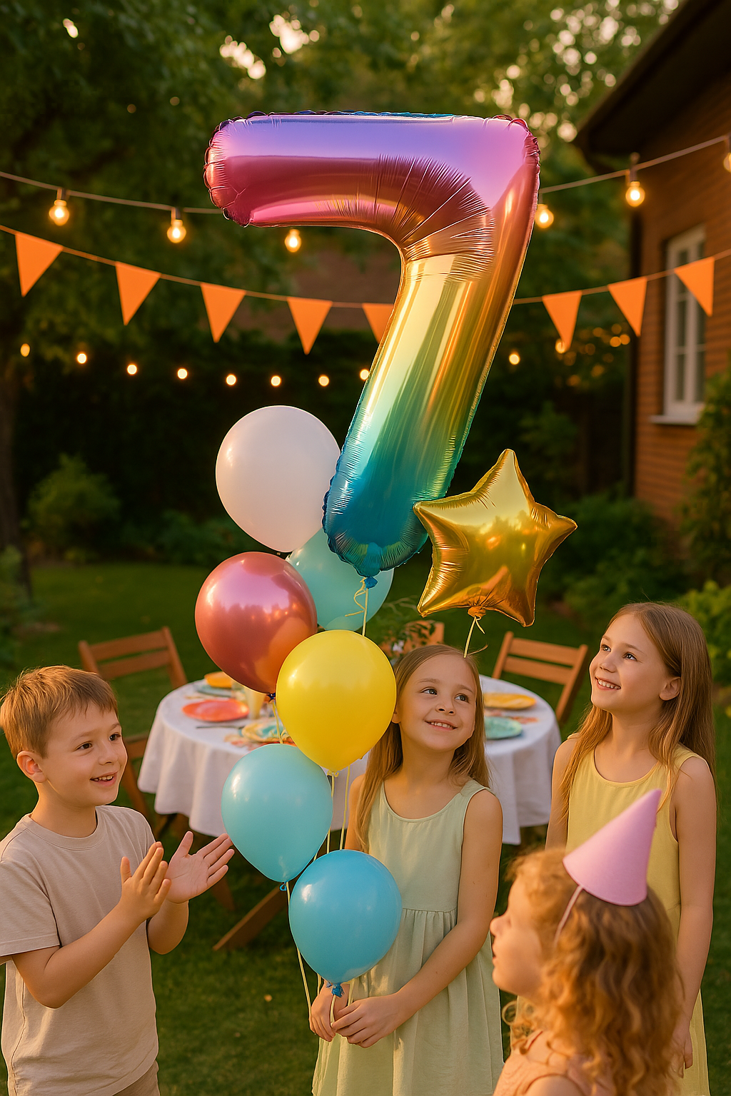 • Balon Foliowy Cyferka "7" Tęczowa (100 cm) – efektowny balon foliowy cyfra 7 w tęczowych odcieniach, świetny na różne okazje.