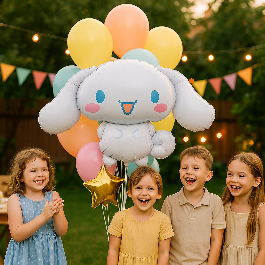 Uroczy balon foliowy w kształcie postaci Cinnamoroll, idealny na przyjęcia urodzinowe, baby shower czy inne okazje. Balon przedstawia białego króliczka z dużymi uszami, niebieskimi oczami i różowymi policzkami. Wykonany z wysokiej jakości folii, jest trwały i łatwy do napełnienia helem lub powietrzem. Dodaj wyjątkowego uroku swojemu wydarzeniu dzięki tej uroczej dekoracji!