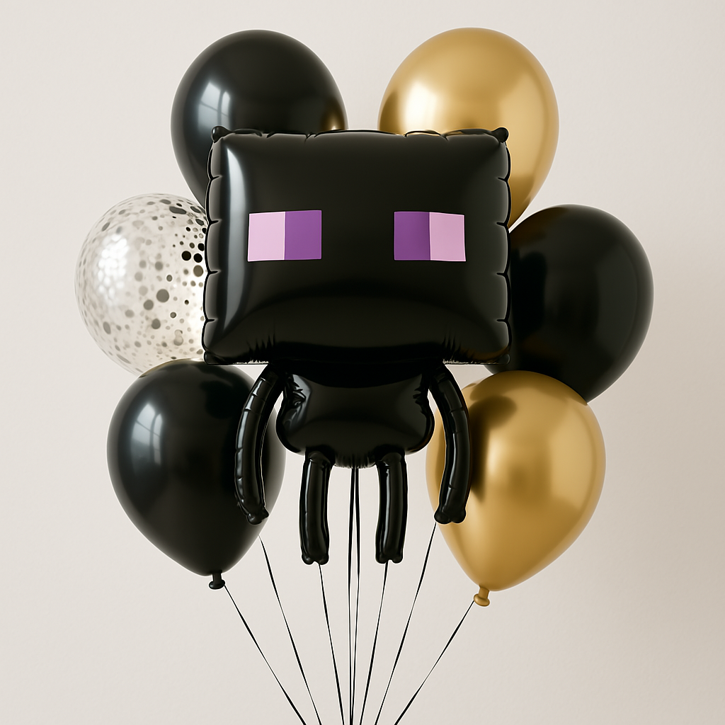 Balon foliowy o wymiarach 43x65 cm przedstawia postać z uwielbianej gry komputerowej. Jego kwadratowa głowa, czarne kończyny i intensywne fioletowe oczy sprawiają, że idealnie nadaje się jako dekoracja na urodziny, tematyczne przyjęcia lub jako wyjątkowy akcent w pokoju fana gier. Wykonany z trwałego materiału, może być napełniany powietrzem lub helem, co zapewnia długi czas uniesienia i świetny efekt wizualny.