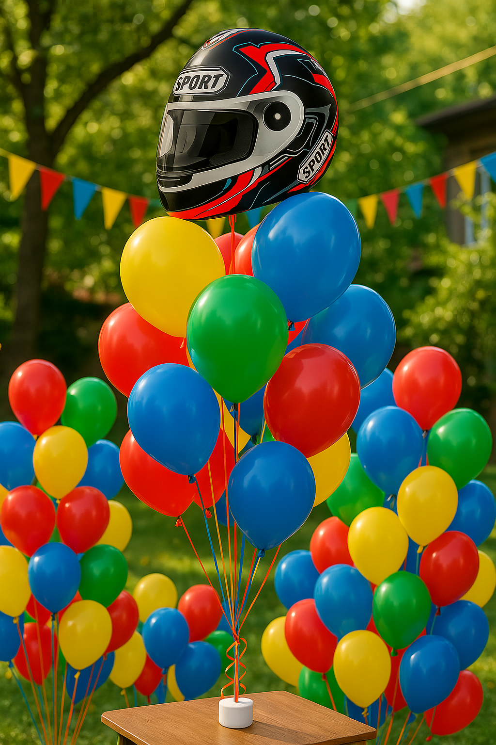 - Balon foliowy w kształcie kasku motocyklowego, idealny na imprezy tematyczne i dekoracje. 50x52 cm