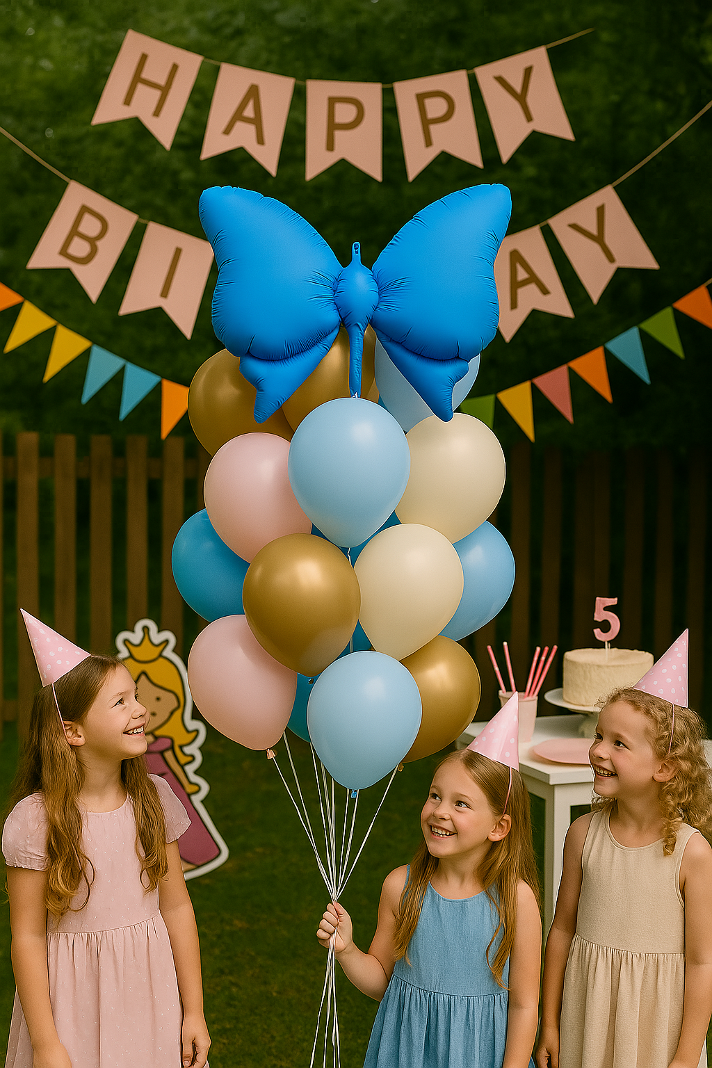 - Фольгована кулька у формі метелика насиченого синього кольору.