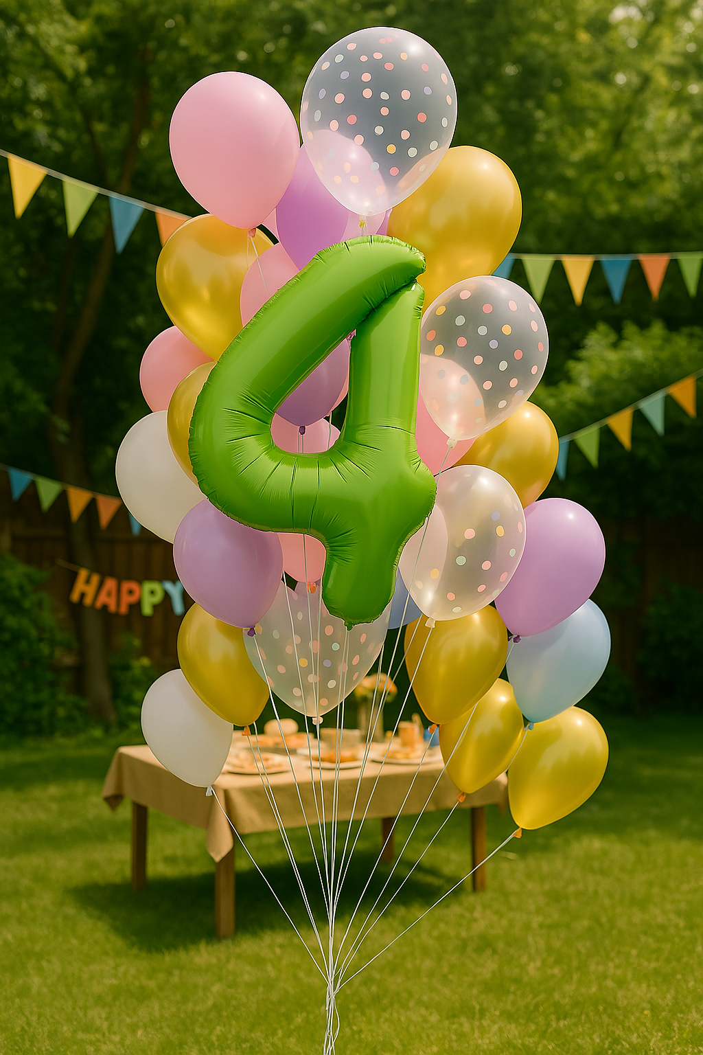 - Фольгована повітряна куля Цифра "4" зелений неон (100 см) - велика фольгована куля у формі цифри 4, ідеально підходить для композицій з цифр та прикрас на різні випадки життя.