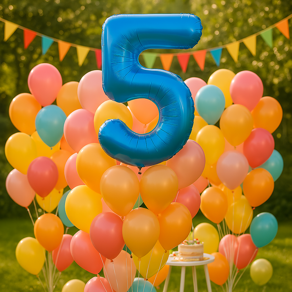 Фольгована повітряна куля у формі цифри 5 в неоновому блакитному кольорі, висота 100 см. Ідеально підходить для всіх видів святкувань, таких як дні народження, ювілеї або тематичні вечірки. Куля може бути наповнена гелієм або повітрям. Виготовлений з міцного матеріалу, що забезпечує тривале збереження форми та кольору. Чудово підходить для оформлення інтер'єру та фотосесій.