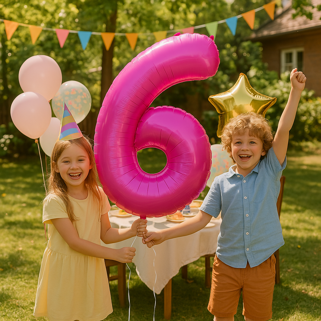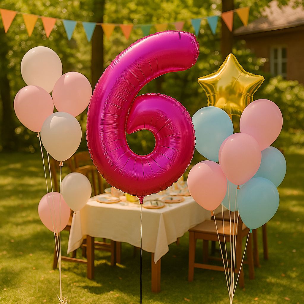 Фольгована повітряна куля у формі цифри 6 в кольорі рожевий неон, висота 100 см. Ідеально підходить для всіх видів святкувань, таких як дні народження, ювілеї або тематичні вечірки. Куля може бути наповнена гелієм або повітрям. Виготовлений з міцного матеріалу, що забезпечує тривале збереження форми та кольору. Чудово підходить для оформлення інтер'єру та фотосесій.