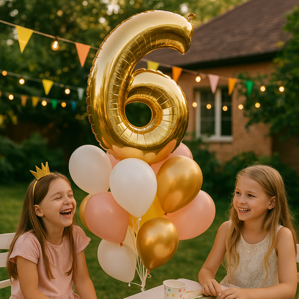- Фольгована повітряна куля Цифра "6" Шампань (100 см) - велика повітряна куля з фольги у формі цифри 6, ідеально підходить для композицій з цифр та прикрас на різні випадки життя.