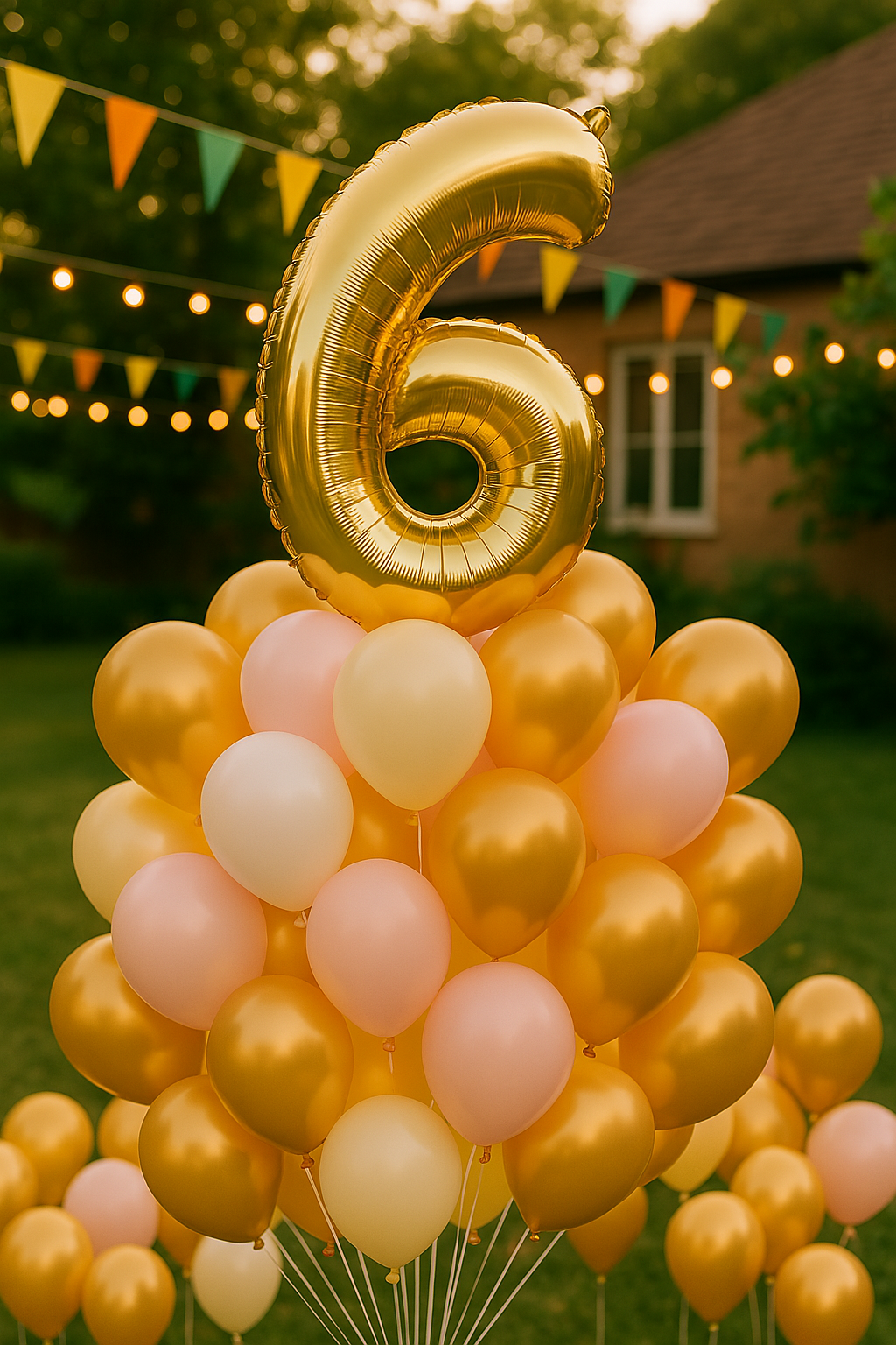 Фольгована повітряна куля у формі цифри 6 кольору шампань, висота 100 см. Ідеально підходить для всіх видів святкувань, таких як дні народження, ювілеї або тематичні вечірки. Куля може бути наповнена гелієм або повітрям. Виготовлений з міцного матеріалу, що забезпечує тривале збереження форми та кольору. Чудово підходить для оформлення інтер'єру та фотосесій.
