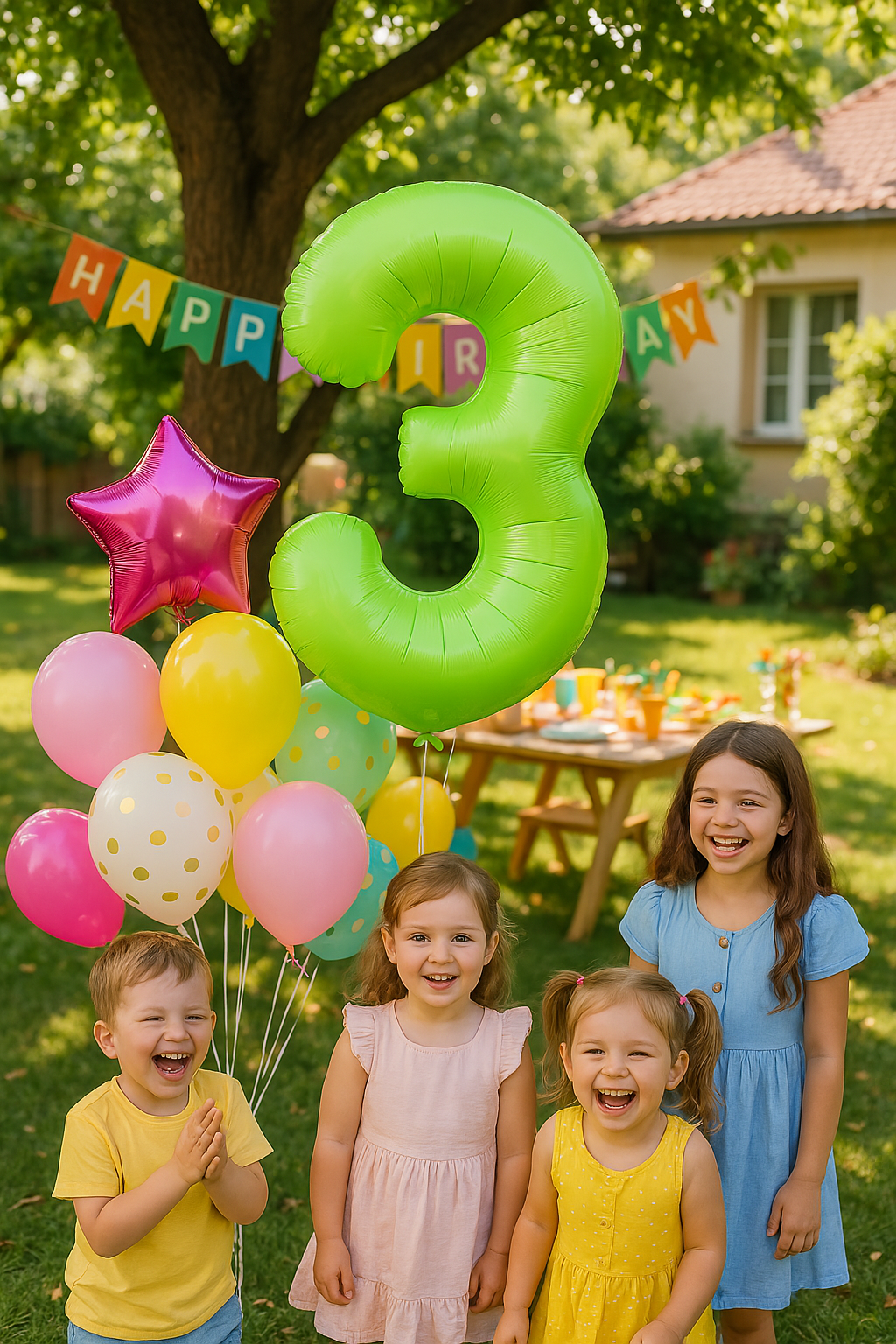 - Фольгована повітряна куля Цифра "3" Зелений неон (100 см) - велика фольгована куля у формі цифри 3, ідеально підходить для композицій з цифр та прикрас на різні випадки життя.