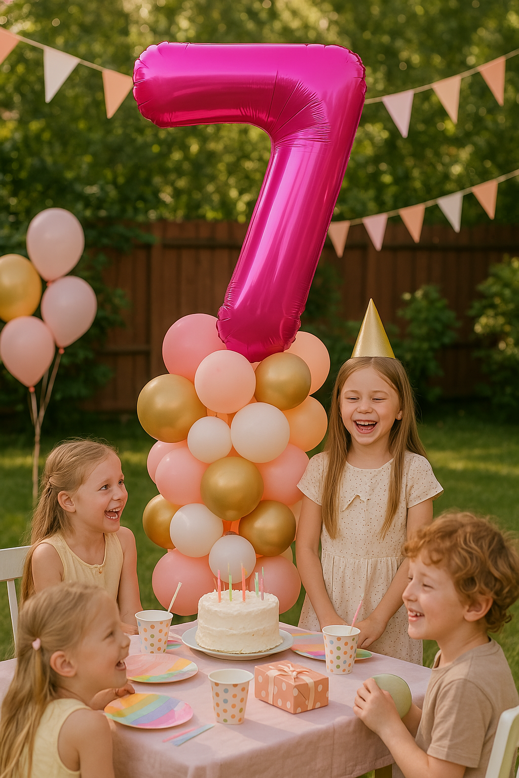 Фольгована повітряна куля у формі цифри 7 в кольорі рожевий неон, висота 100 см. Ідеально підходить для всіх видів святкувань, таких як дні народження, ювілеї або тематичні вечірки. Куля може бути наповнена гелієм або повітрям. Виготовлений з міцного матеріалу, що забезпечує тривале збереження форми та кольору. Чудово підходить для оформлення інтер'єру та фотосесій.