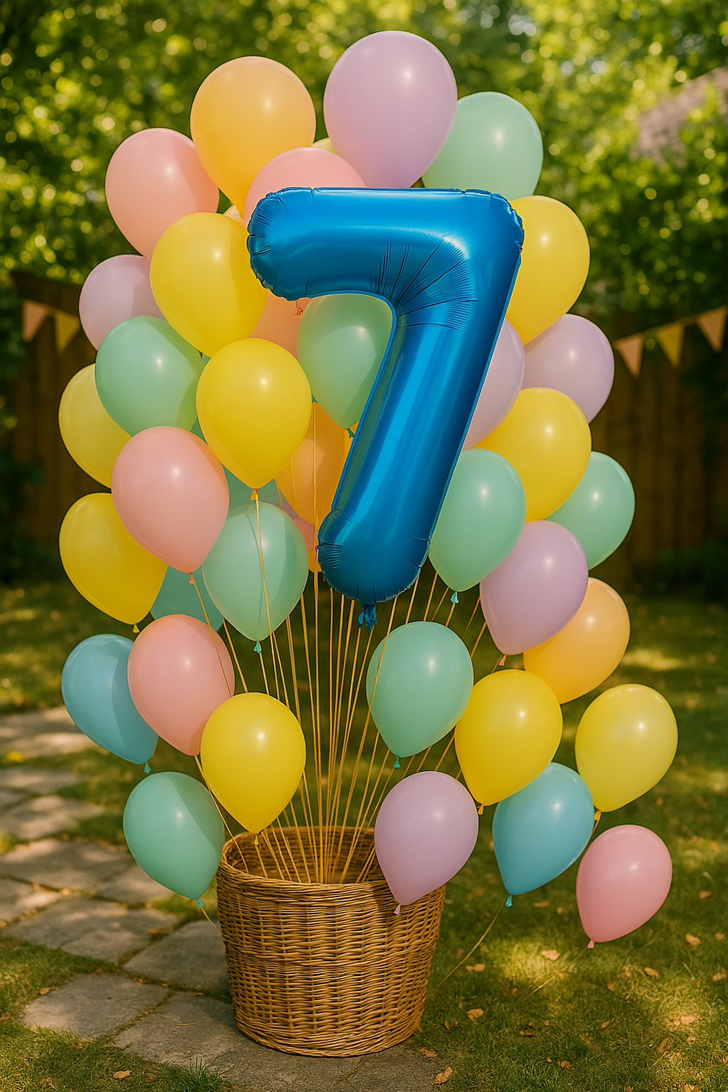 Фольгована повітряна куля у формі цифри 7 в неоновому блакитному кольорі, висота 100 см. Ідеально підходить для всіх видів святкувань, таких як дні народження, ювілеї або тематичні вечірки. Куля може бути наповнена гелієм або повітрям. Виготовлений з міцного матеріалу, що забезпечує тривале збереження форми та кольору. Чудово підходить для оформлення інтер'єру та фотосесій.